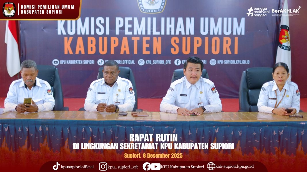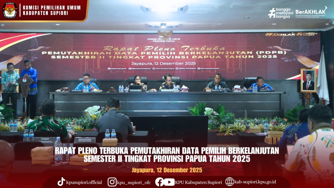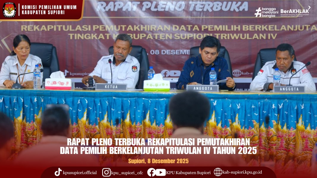 #Temanpemilih , KPU Kabupaten Supiori melaksanakan Rapat Pleno Terbuka Pemutakhiran Data Pemilih Berkelanjutan Tingkat Kabupaten Supiori Triwulan IV pada Senin, 8 Desember 2025.