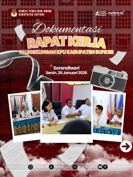#Temanpemilih , "Sinergi tanpa henti demi demokrasi. ???? Hari ini, Senin, 26 Januari 2026, Ketua, Sekretaris, Kasubbag, serta Staf KPU Kabupaten Supiori melaksanakan Rapat Kerja di Lingkungan KPU Kabupaten Supiori guna mengevaluasi capaian kinerja pekan lalu dan memantapkan rencana kerja ke depan. Koordinasi yang solid adalah kunci pelayanan yang prima bagi masyarakat.